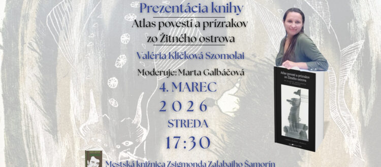 Szeretettel várunk mindenkit Szomolai Klička Valéria könyvbemutatójára- Atlas povestí zo Žitného ostrova / z Podhorácka