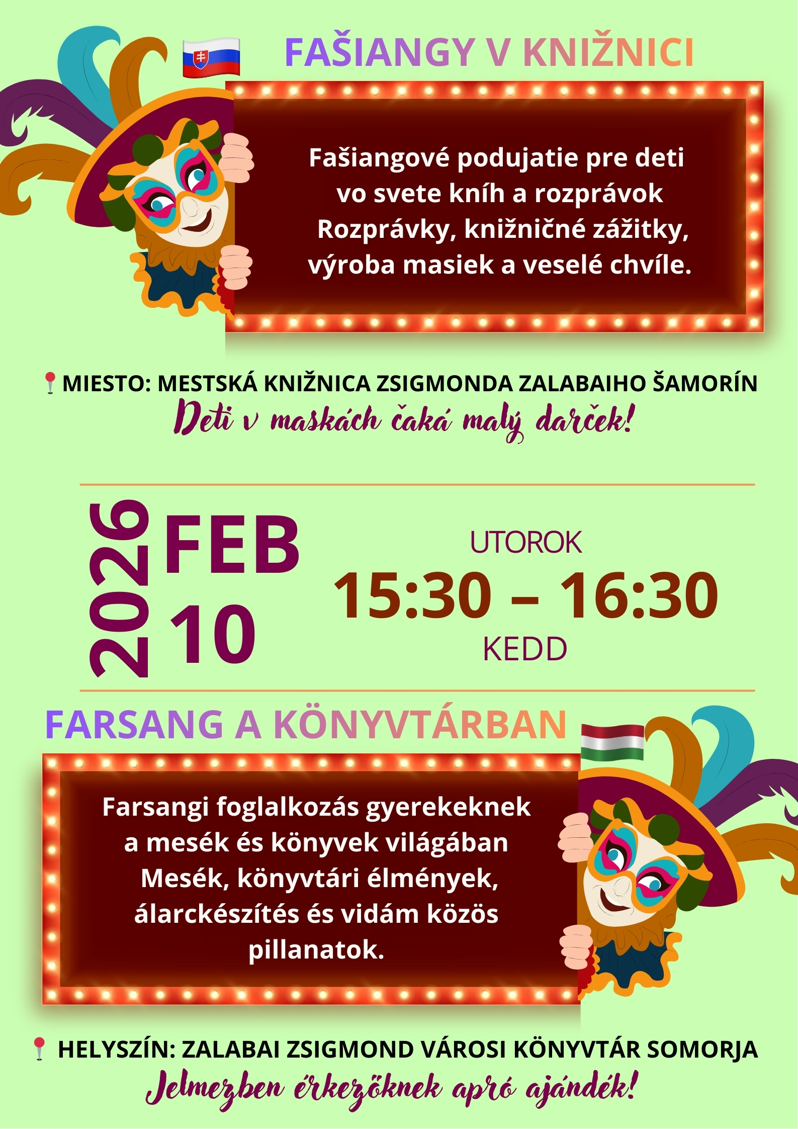 Rozprávky, knihy, výroba masiek a veselá fašiangová atmosféra čakajú deti v knižnici.